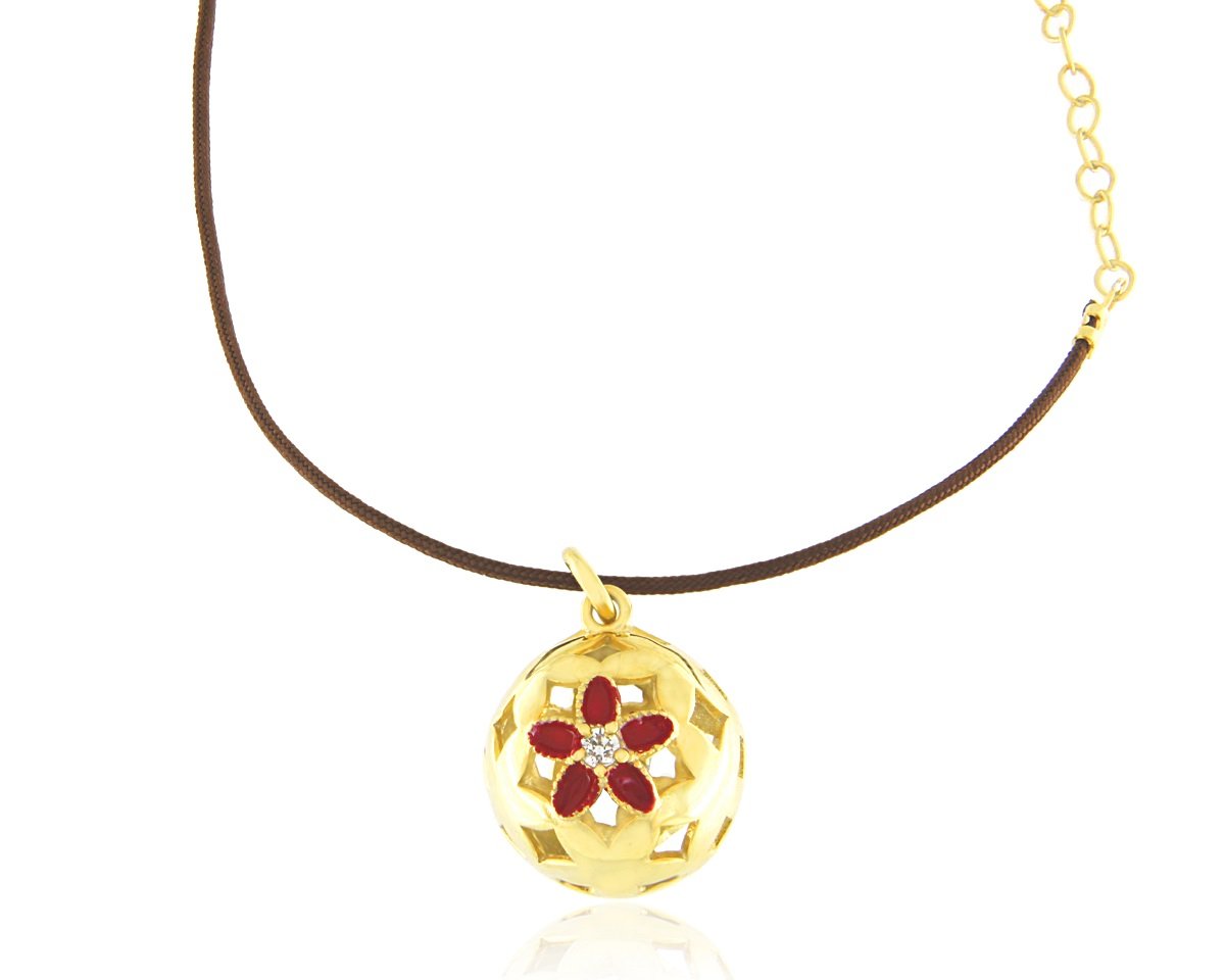 Γούρια 2026 – μενταγιόν λουλούδι – Επιχρυσωμένο με Κόκκινα Ζιργκόν – GΙ-026009