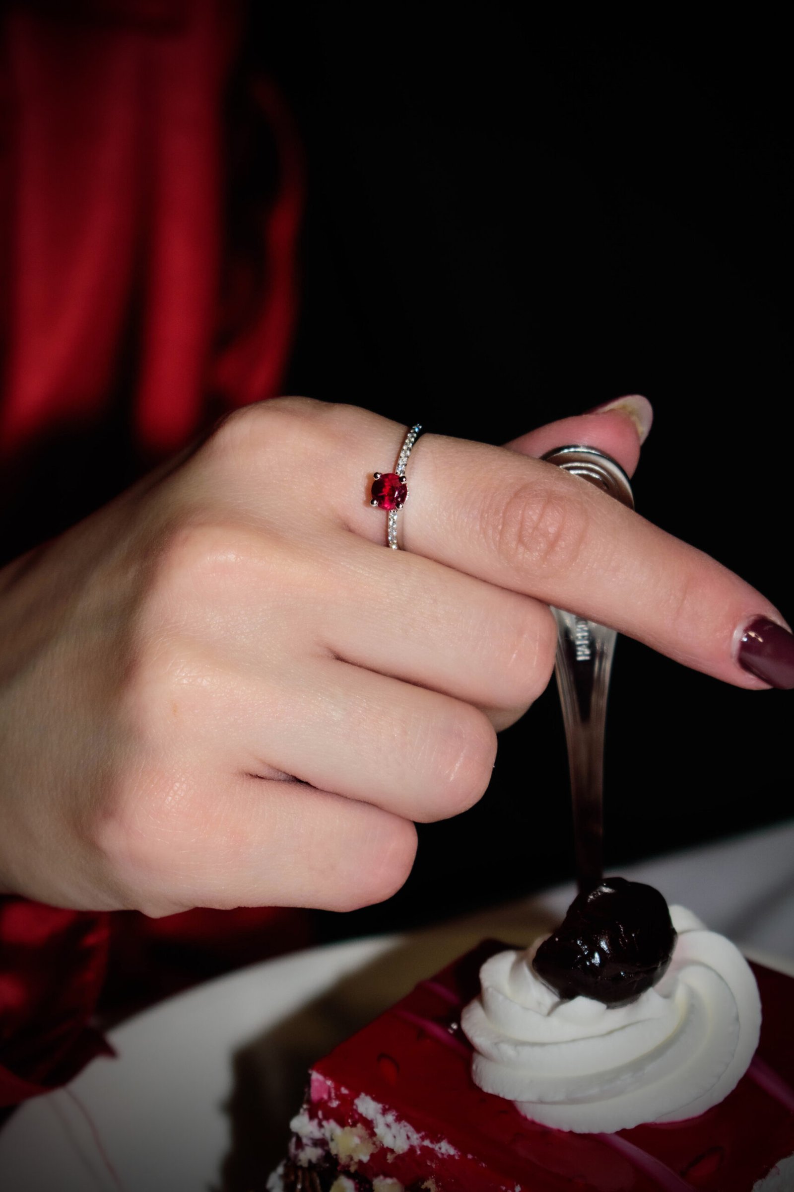 Το ρουμπίνι πλαισιώνεται αρμονικά από 16 διαμάντια των 0.09ct το καθένα, προσφέροντας εντυπωσιακή λάμψη και ισορροπία στο σχέδιο.