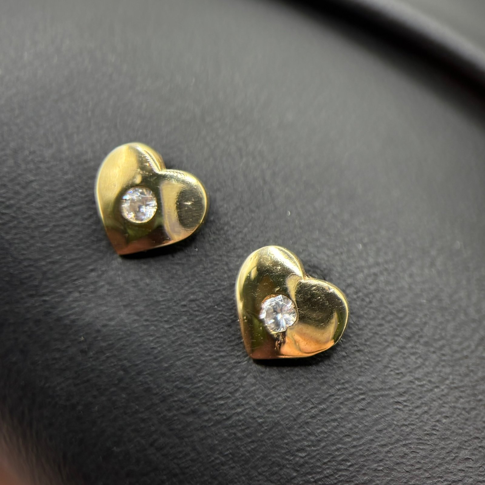 Καρφωτά Σκουλαρίκια Κ9 στο σχήμα της Καρδιάς με Ζιργκόν στο κέντρο σε Κίτρινο Χρυσό (Μεγάλο Μέγεθος)