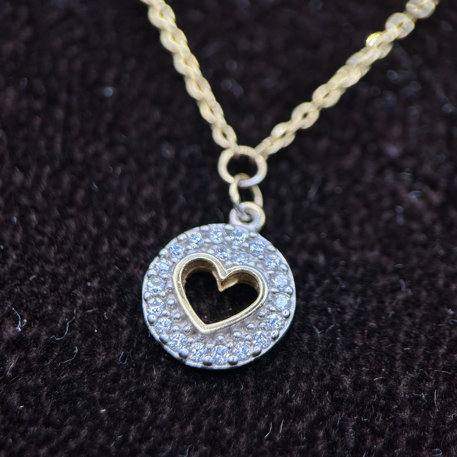 Κομψό κολιέ από χρυσό Κ14 σε εντυπωσιακή διχρωμία, με στρογγυλό μοτίφ διακοσμημένο περιμετρικά με λαμπερά ζιργκόν.