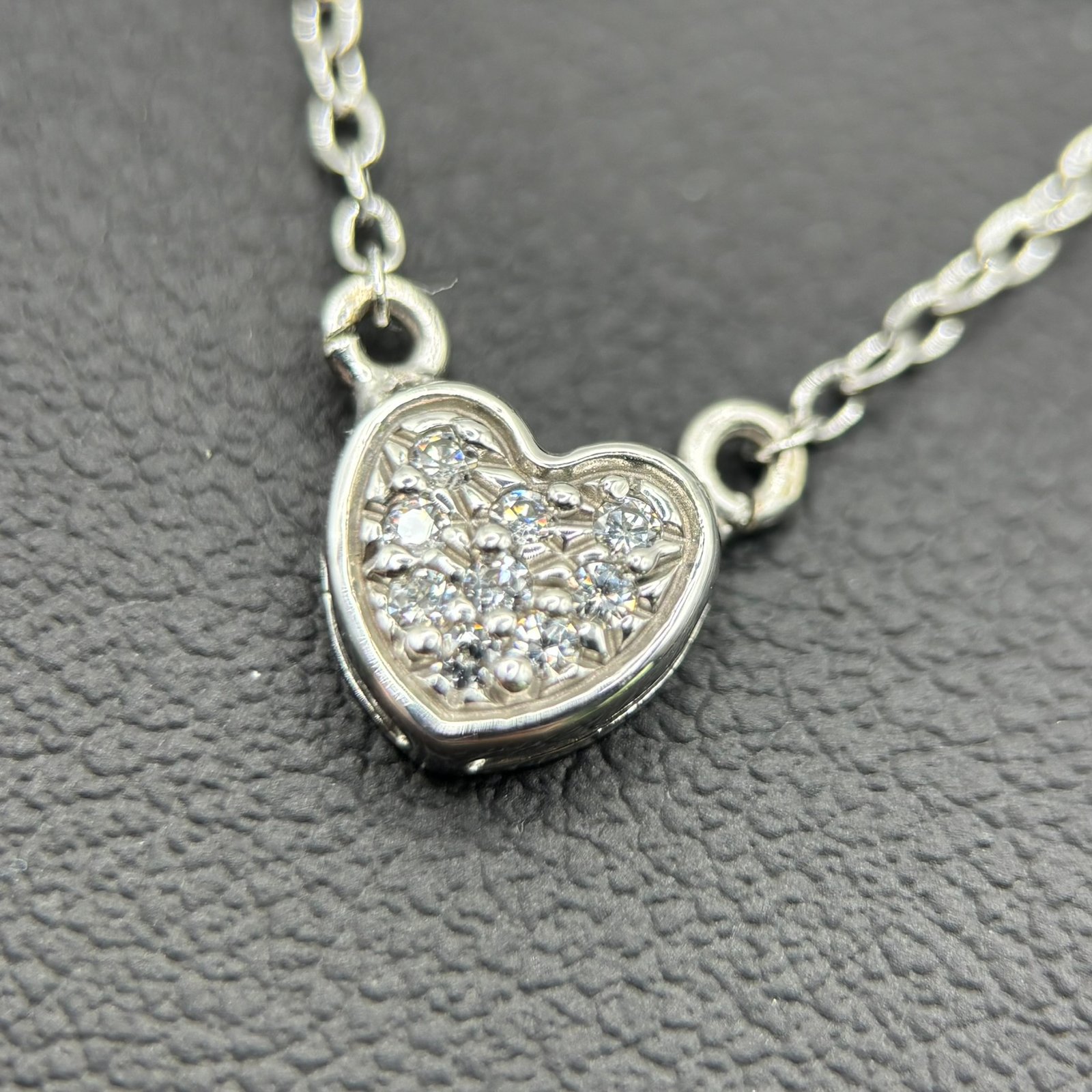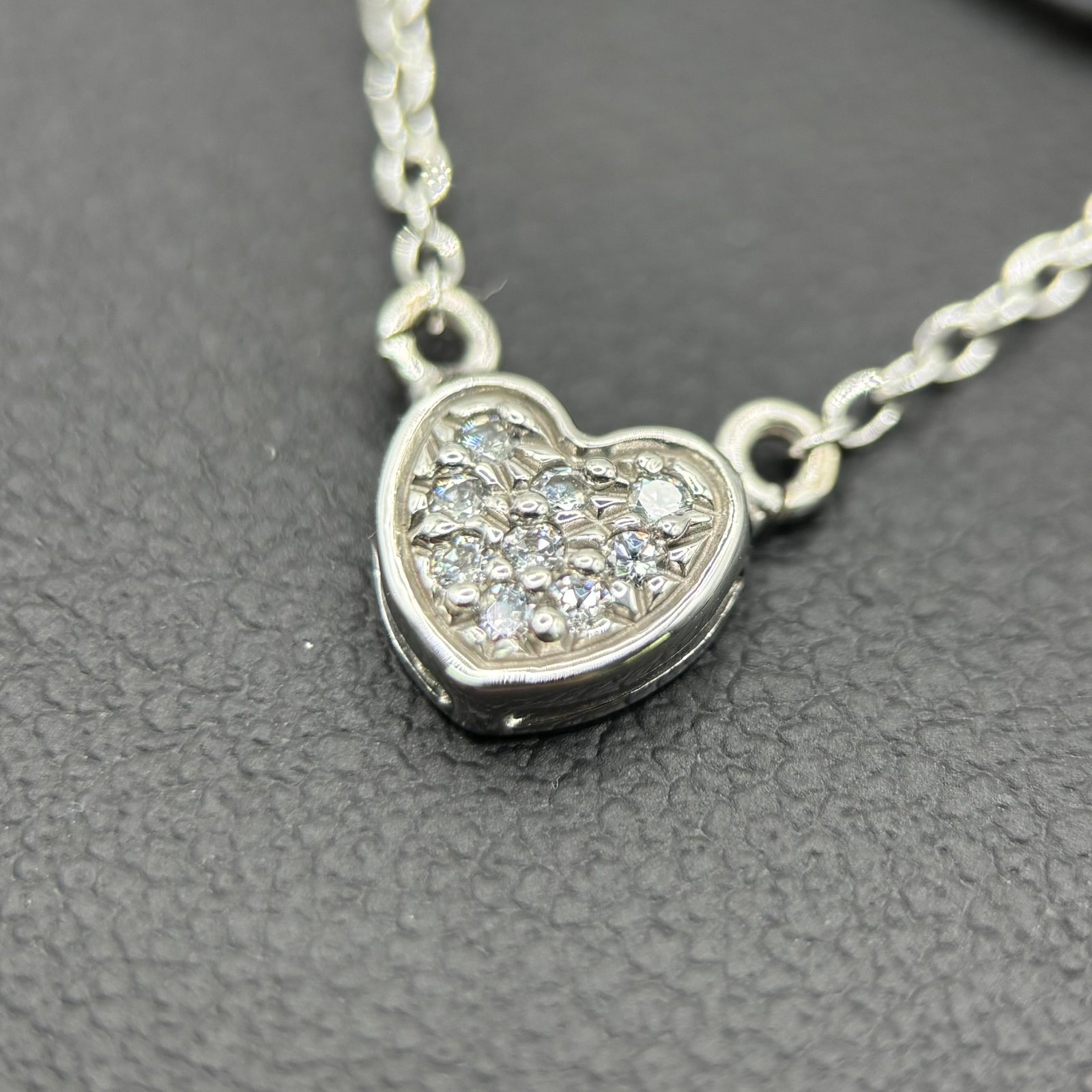 Κολιέ σε λευκόχρυση απόχρωση με pavé δέσιμο από μικρά ζιργκόν που καλύπτουν ολόκληρη την επιφάνεια της καρδιάς, χαρίζοντας έντονη λάμψη και σύγχρονη αισθητική.