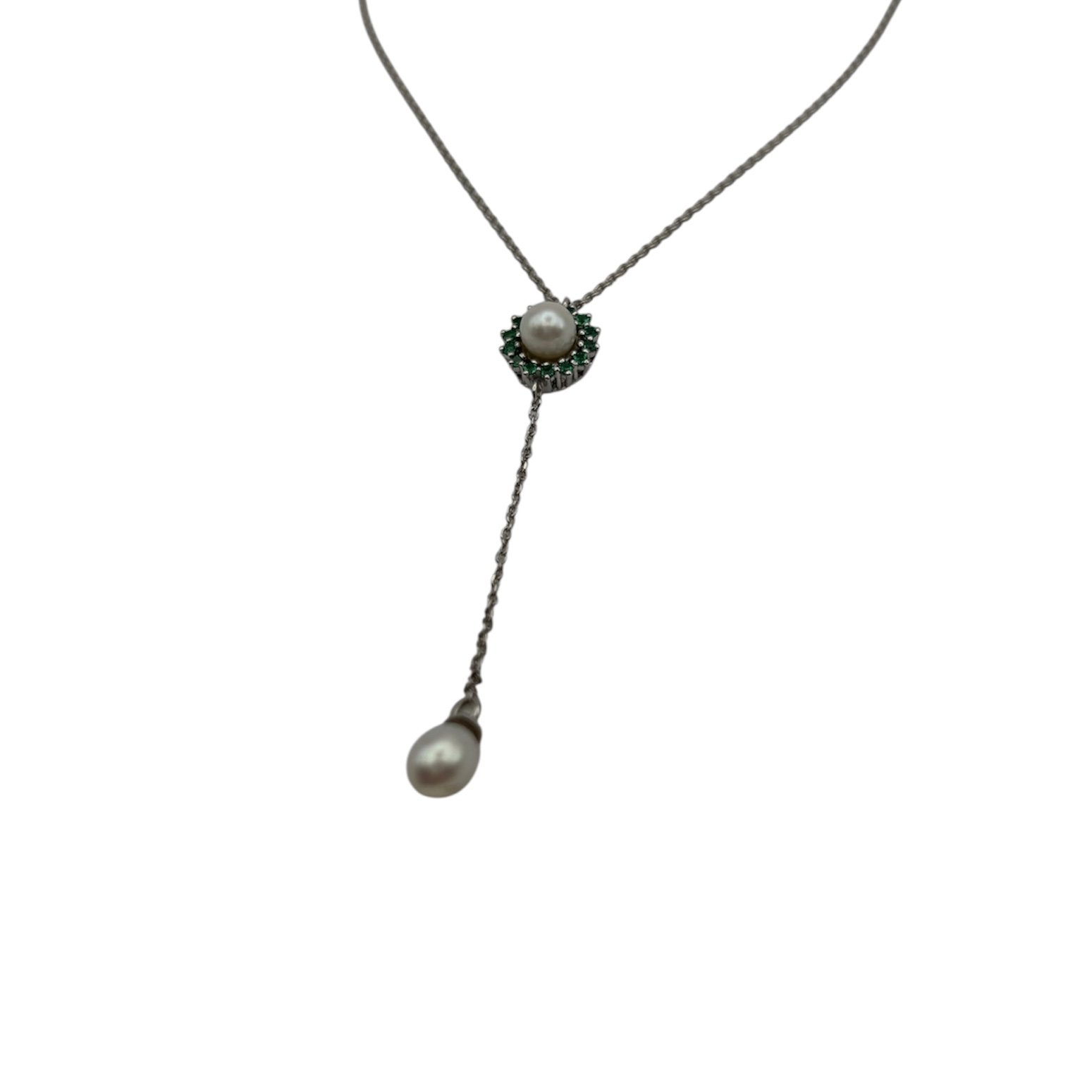 Fa Cadoro Κολιέ Ασήμι 925 με Μαργαριτάρι & Πράσινα Ζιργκόν – Y Necklace