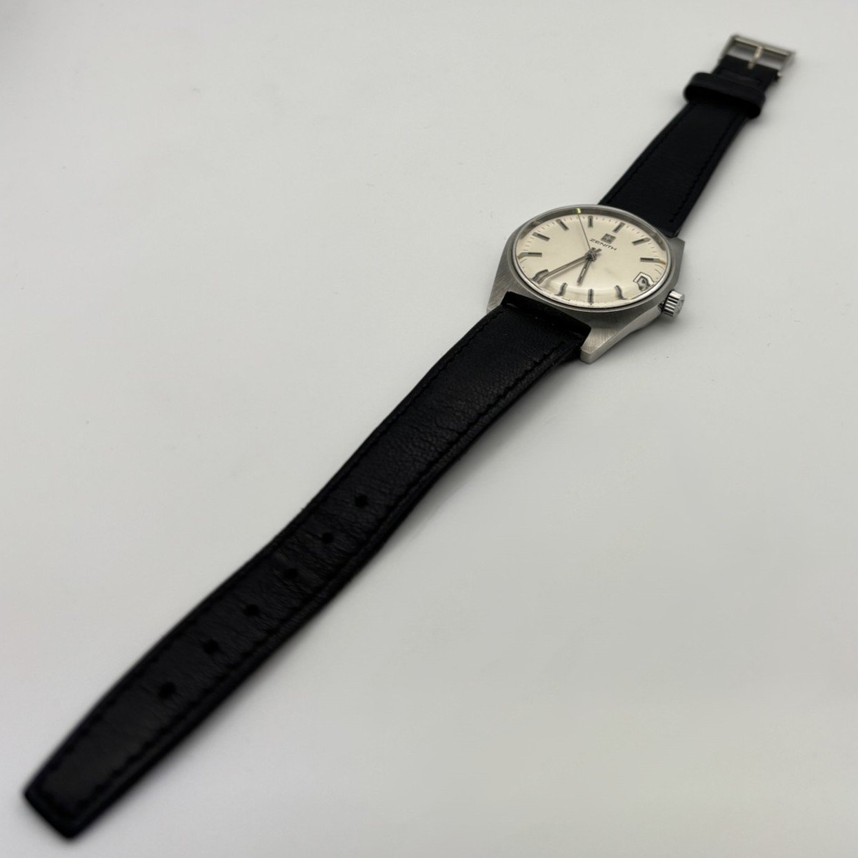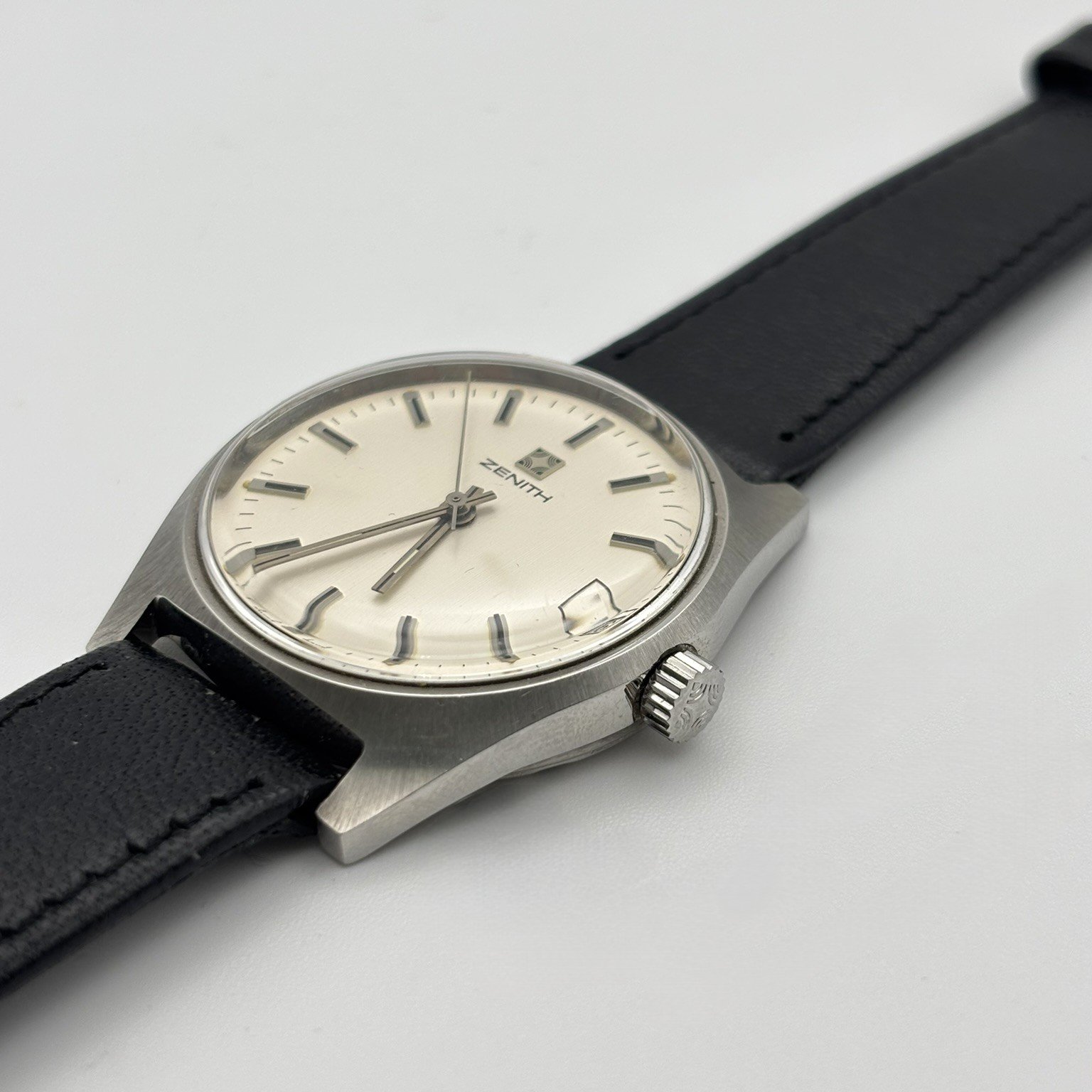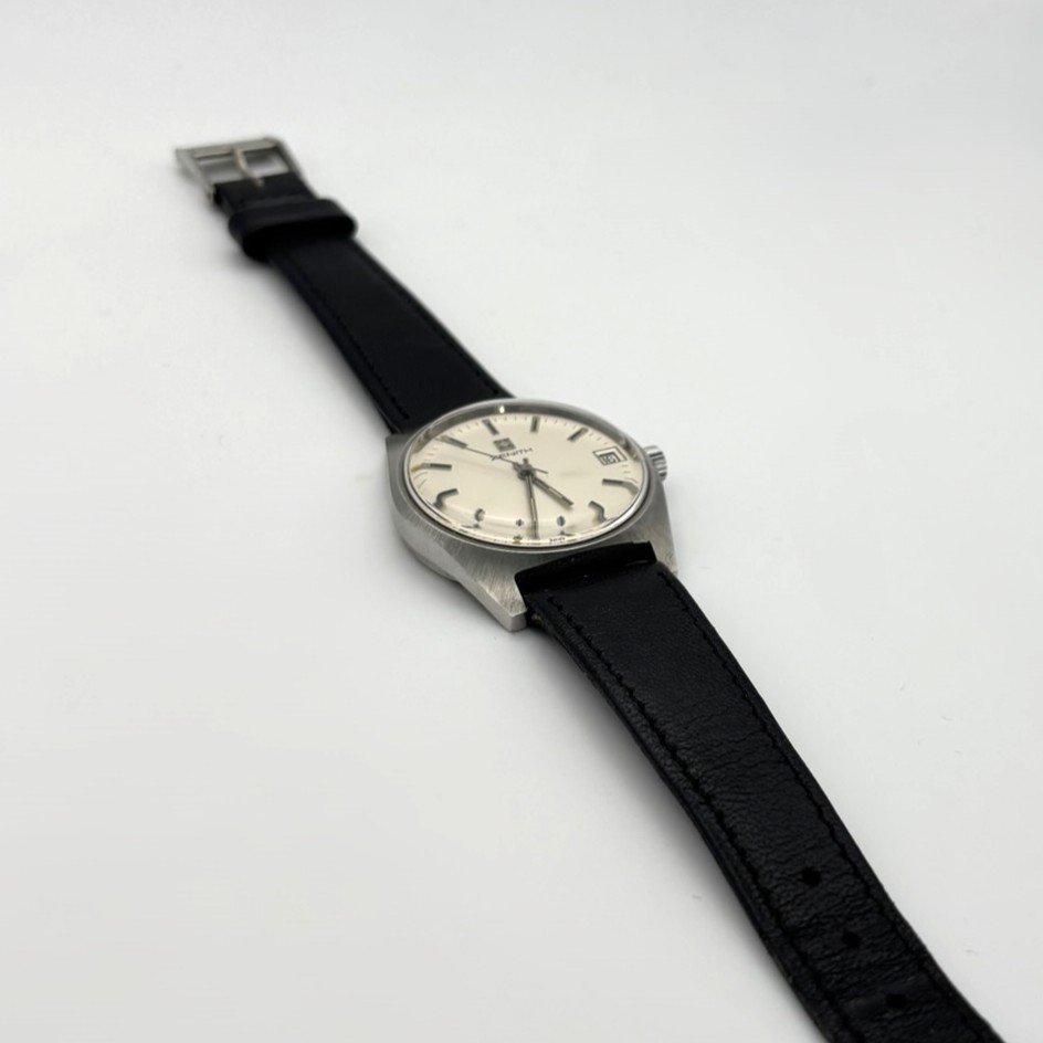Κλασικό και διαχρονικό ρολόι χειρός Zenith, χαρακτηριστικό δείγμα ελβετικής ωρολογοποιίας με έμφαση στην ακρίβεια και τη λιτή κομψότητα. Η ανοξείδωτη ατσάλινη κάσα με σατινέ φινίρισμα συνδυάζεται άψογα με το κρεμ καντράν, το οποίο διαθέτει λεπτούς μεταλλικούς δείκτες και γραμμικές ενδείξεις ώρας, προσφέροντας εξαιρετική αναγνωσιμότητα.